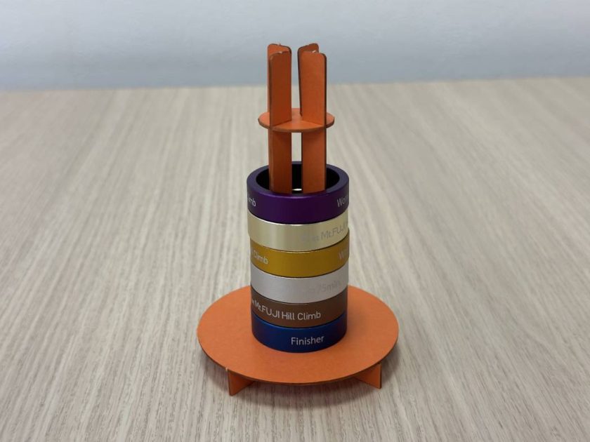 参加賞(参考デザイン):フィニッシャーリングをディスプレイするスタンド(写真は開発中のサンプルです。カラーや実際の仕様は異なります)。※フィニッシャーリングは含まれません。