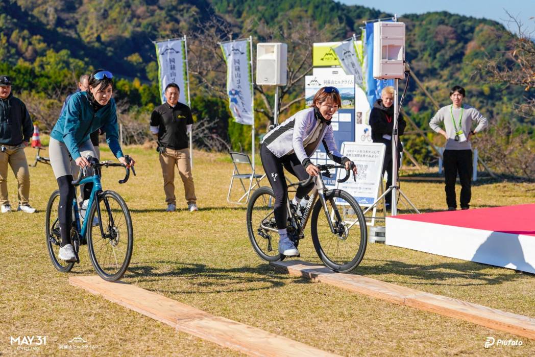 ヒルクライムレース後、大会会場では日本と韓国で活動する女性インフルエンサーを招き「対抗戦」と銘打ったステージイベントを行いました。対抗戦は自転車で競うだけでなく⁉ 阿蘇ヒルだからこその、ユニークな演目もあり会場を盛り上げていました。