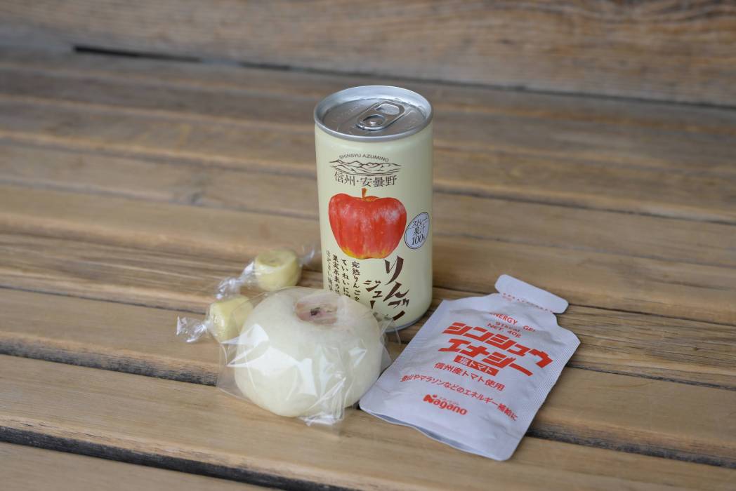 安曇野エイドは信州りんごジュース、わさびチーズ、赤飯まんじゅう、シンシューエナジー。わさびチーズはピリッとわさびを感じつつ、思わず「生中!」と言いたくなるテイストだ!
