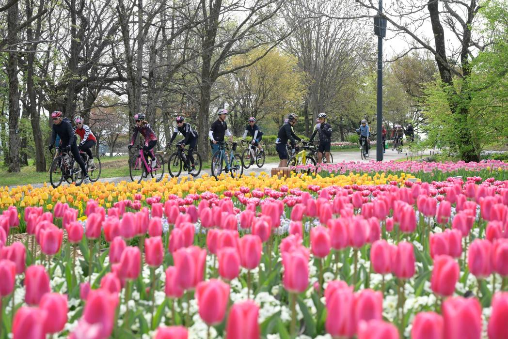 朝は肌寒さもあるが日中は快晴で気温も上がり絶好の花見サイクリング日和となった