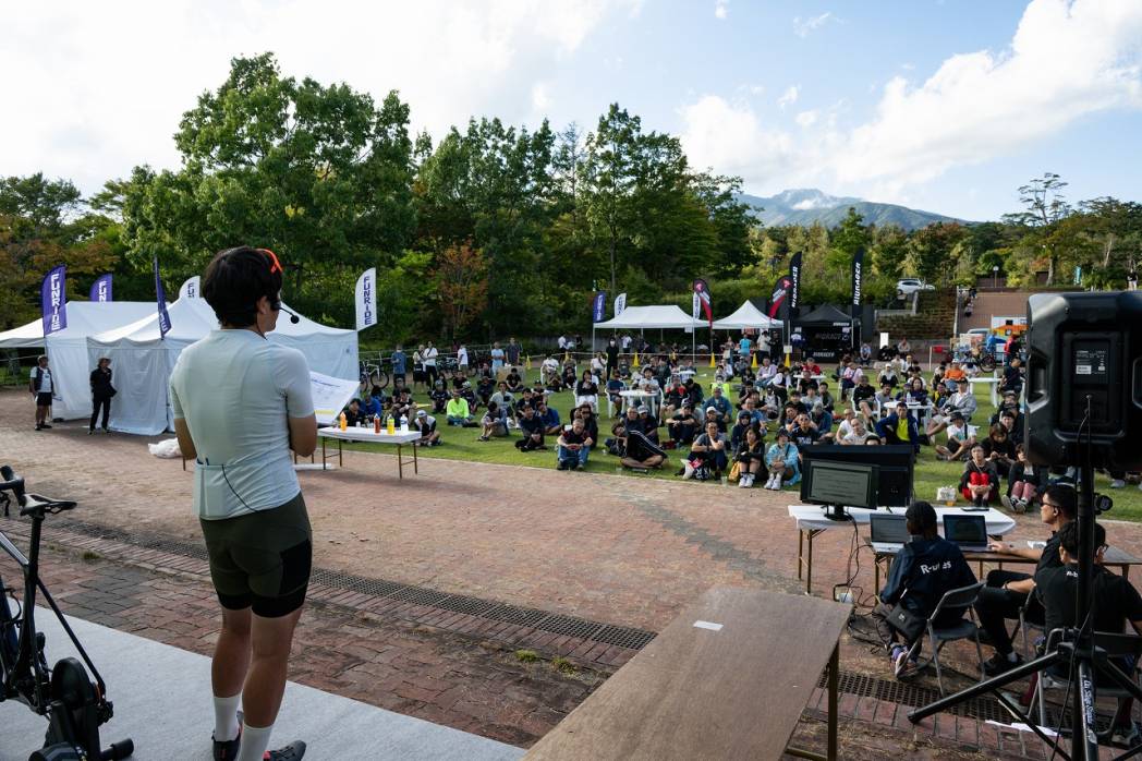 前日受付が行われた27日、メイン会場の清里の森のステージでは「富士ヒル攻略に向けて」と題したセミナーを開催。講師は、元プロ選手で2022年まで愛三工業レーシングチームの監督を務めた別府匠さん。現役時代の2007年には富士ヒルの招待選手として当時のコースレコードとなる58分35秒を記録するなど、国内屈指のクライマーとして活躍した。