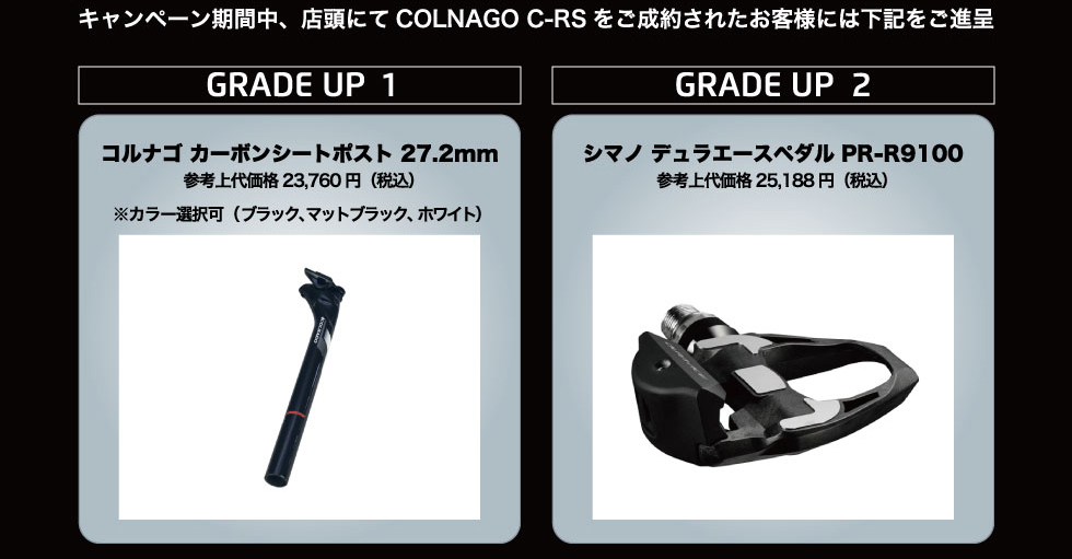 コルナゴ・カーボンシートポストかシマノ デュラエースペダル PR-R9100のどちらかお好きな方を進呈