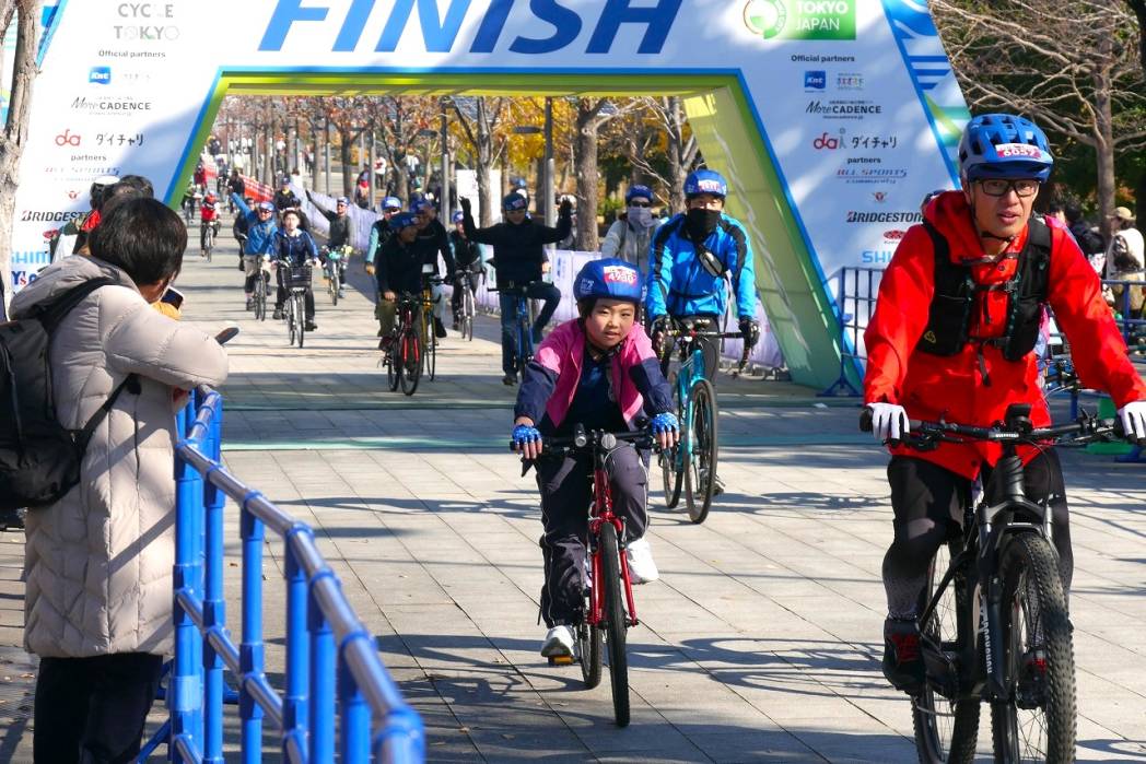 午前7時半過ぎ、お台場海浜公園のスタート地点で小池百合子東京都知事がフラッグを振り下ろしてスタート。朝は冬らしい寒さが参加者の身を引き締めたが、青空が広がり降り注ぐ太陽の光の下で気温はぐんぐん上昇。風もほとんどなく、自転車で走っていると体が心地よく温まってくる。その中で普段見られない景色を楽しみながら、リズミカルにペダルを回していく。最後はセントラル広場のフィニッシュゲートに、多くの参加者は達成感に満ちた笑顔でゴールした。